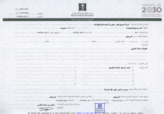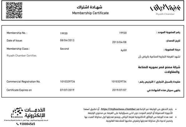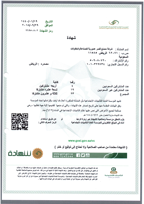 Amouria Palace Factory Company for Industry & Contracting Riyadh, PO.BOX: 11313 Kingdom Of Saudi Arabia